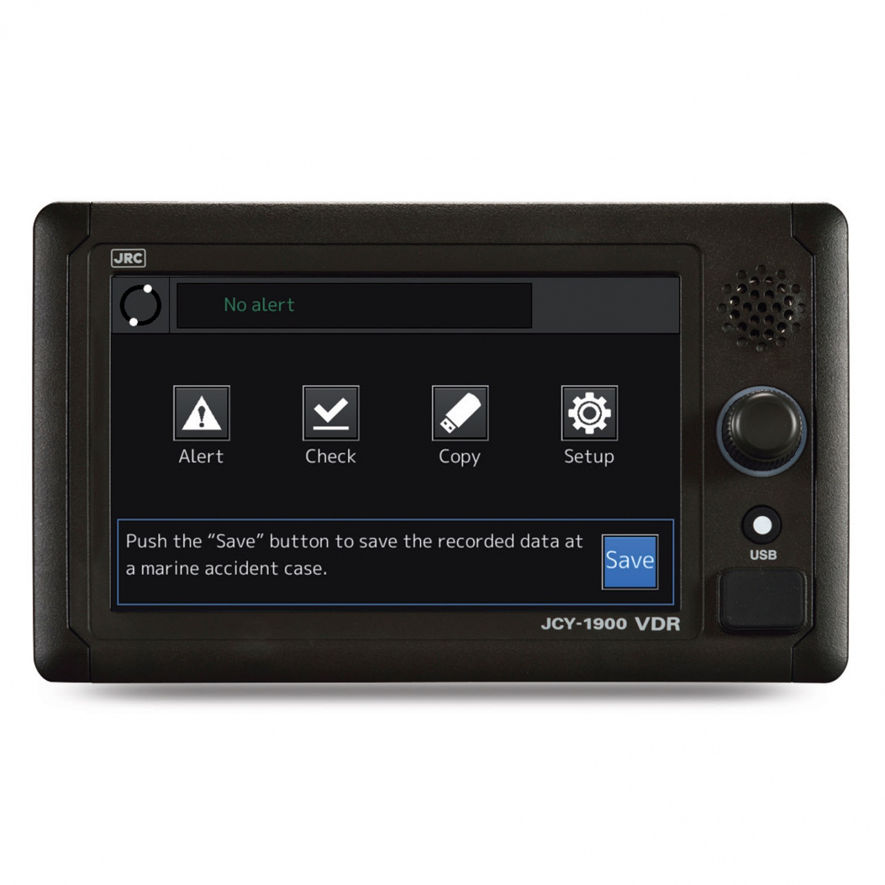 The JCY-1900 is, like its predecessor, black box designed, uses our own designed and fabricated, reliable, marinized hardware, with an easy IP based format, purposely designed for our VDR. Newly designed for the JCY-1900 is the 7-inch color LCD touch display which allows full system operation. Displaying various VDR alerts with detailed information, see what sensors are connected including status, view the latest recorded image data of radar and ECDIS and playback of audio tracks recorded from microphones.